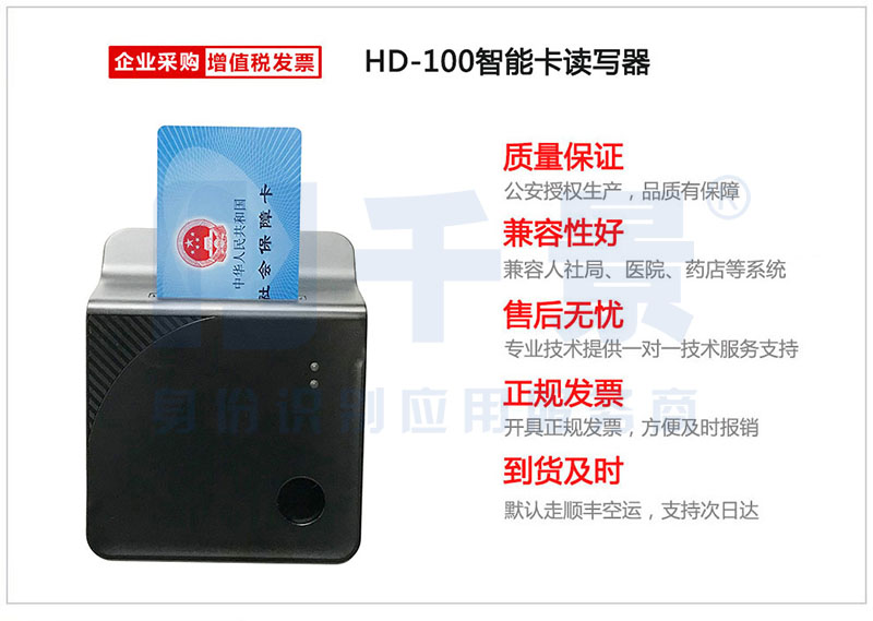 (*由于产品升级或其他原因,华大HD-100黑色社保卡读卡器产品实际参数有可能变更,以实际产品为准。本文中的所有陈述、信息和建议也不构成任何明示或暗示的担保)